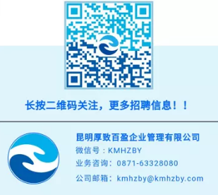 1、疫情期间本次招聘采用微信线上报名方式,报考人员须关注“昆明厚致百盈企业管理有限公司”微信公众号,每人限报一个岗位,多报岗位将取消报名资格。