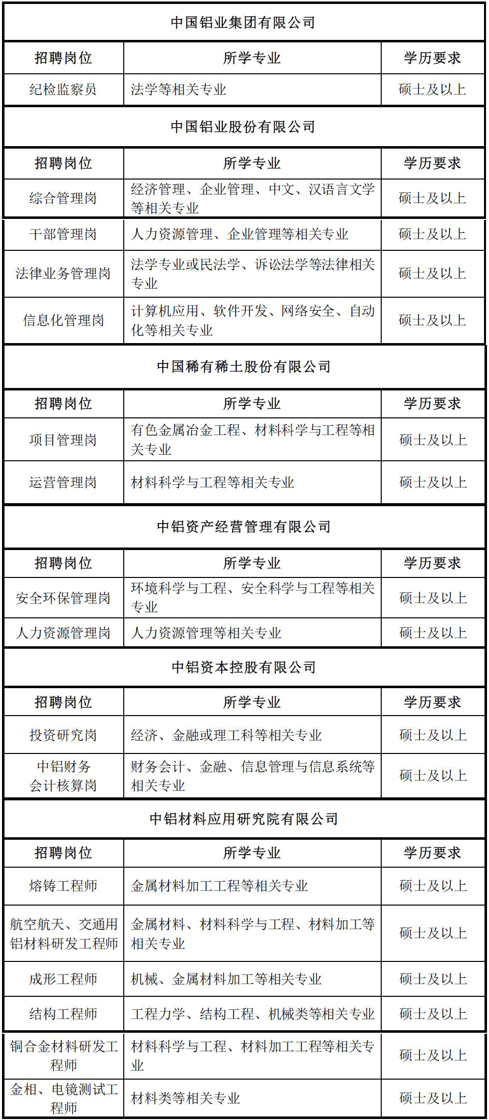 中国铝业集团有限公司2021年应届高校毕业生招聘公告