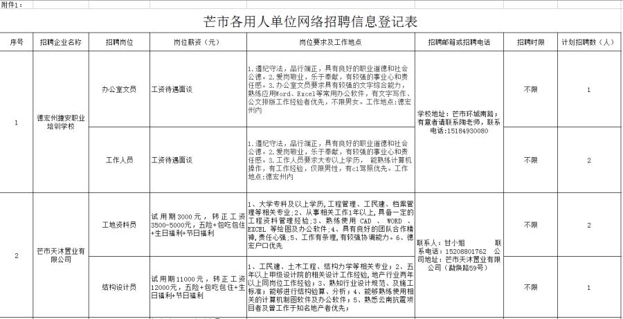 2021年德宏州芒市用人单位网络招聘信息(第八期)