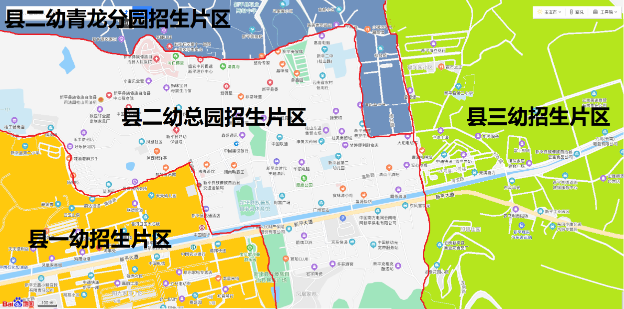 1.县二幼总园招生范围为:新细老公路→庆丰路→富春街 →育新路(小漠沙公园段)→龙马路→龙马路与太平路交岔口→太平路→青龙路(南段)以西,新细老公路→平山路→西园路→西园桥→民族广场以东片区内的以下适龄幼儿: