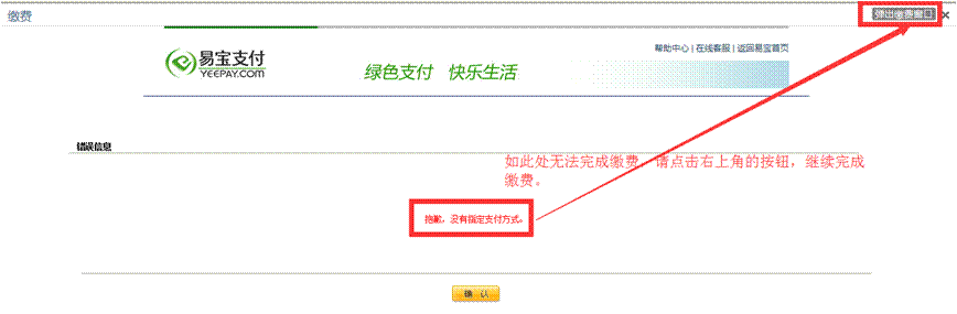 部分考生在缴费时,可能遇到“会话超时”或“抱歉,没有指定支付方式”的错误,如下图所示: