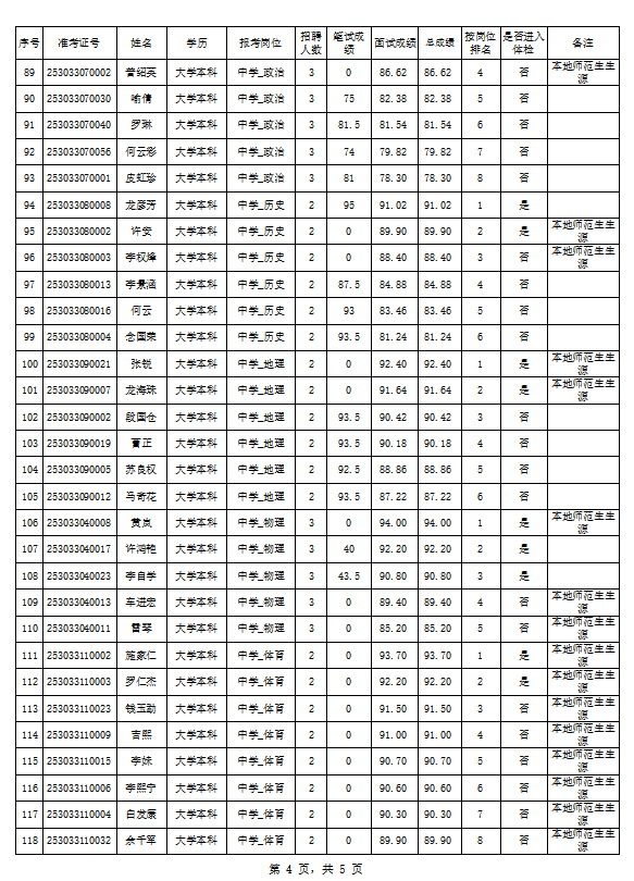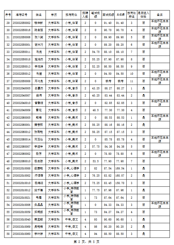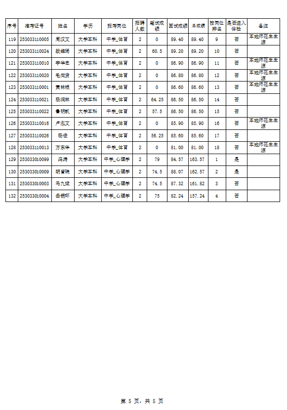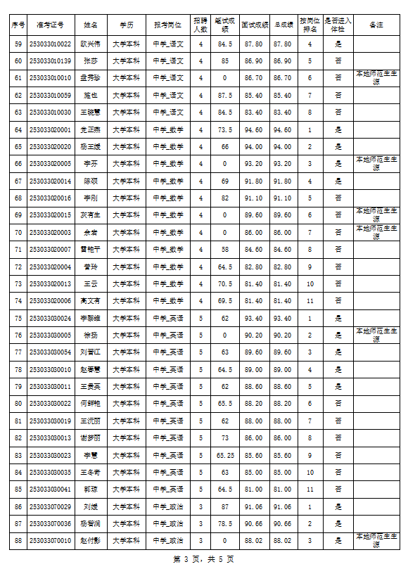 金平县2023年中央特岗教师招聘总成绩公示