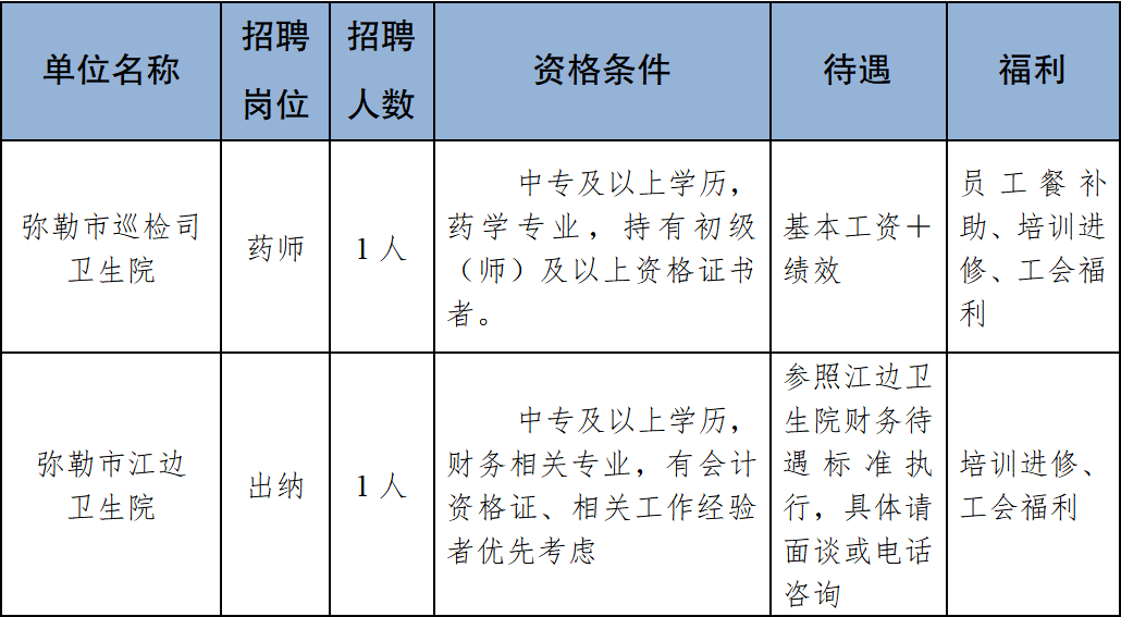 为进一步充实弥勒市紧密型市域医共体人才队伍建设,提升综合服务能力,满足弥勒市紧密型市域医共体发展及人民群众对医疗服务的需求,诚邀有志之士加入,共同奋斗、共绘蓝图,弥勒市紧密型市域医共体分院公开招聘合同制人员2名(药师1名、出纳1名)现将有关事宜公告如下。