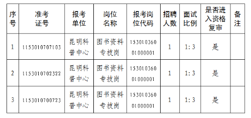 昆明市科学技术协会所属事业单位 2025年公开招聘工作人员进入资格复审人员名单如下:
