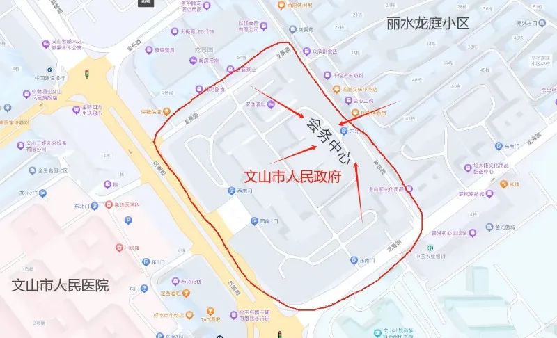 面试地点: 文山市人民政府会务中心一楼。注:可从文山市人民政府东北门进入(军供路)。