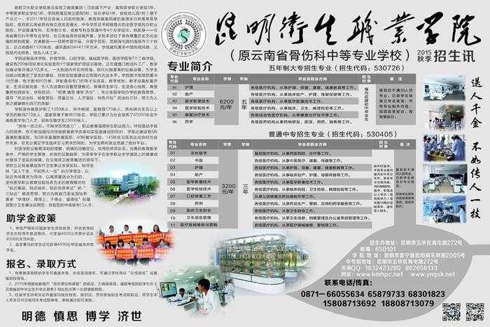 昆明卫生职业学院2015年秋招生折页和招生简章