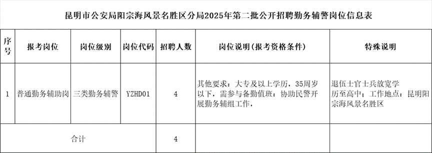 昆明市公安局阳宗海风景名胜区分局2025年第二批公开招聘勤务辅警公告