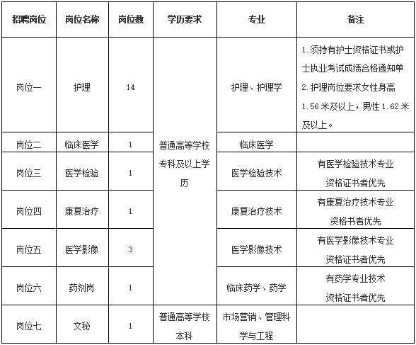 备注:岗位二至岗位七若招录不满剩余名额自动调整到岗位一。