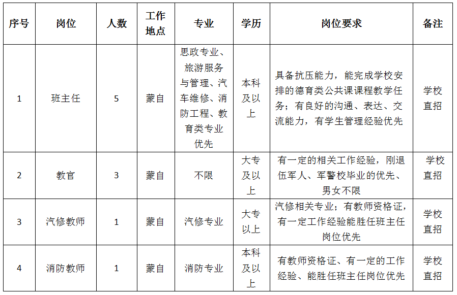 二、招聘岗位(班主任;军管教官;专业课教师;招生老师岗位招聘)