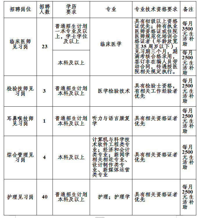(四)在本院从事就业见习岗工作,可参加本院次年非在编人员招聘考试,按一定比例择优录取。