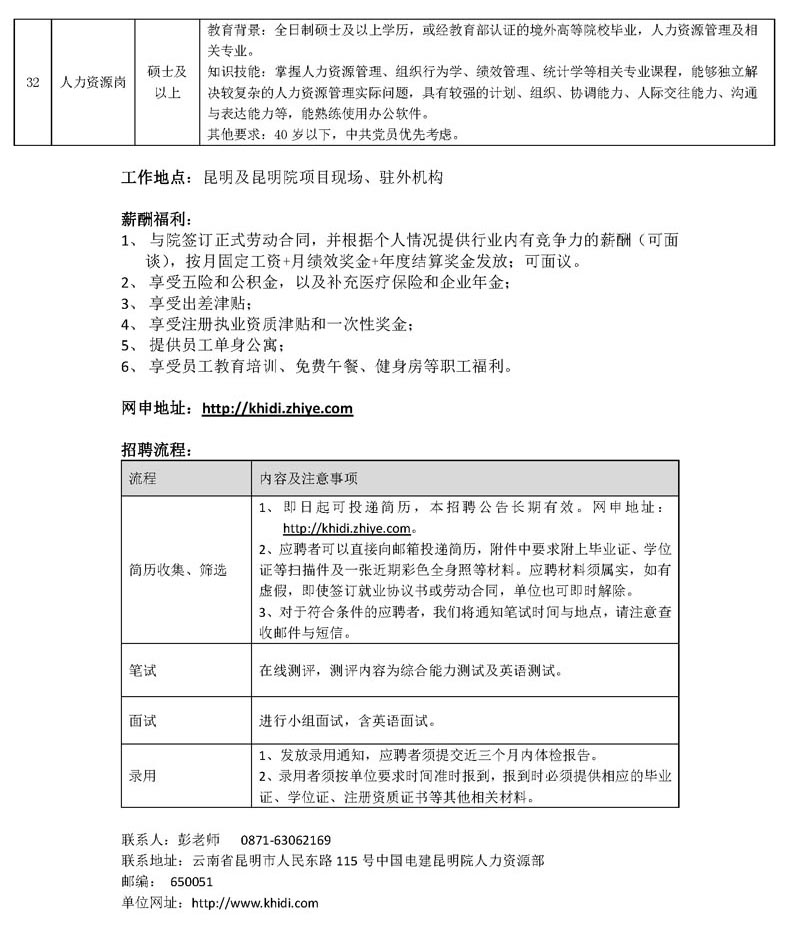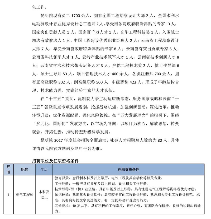 中国电建集团昆明勘测设计研究院有限公司2017年社会招聘公告