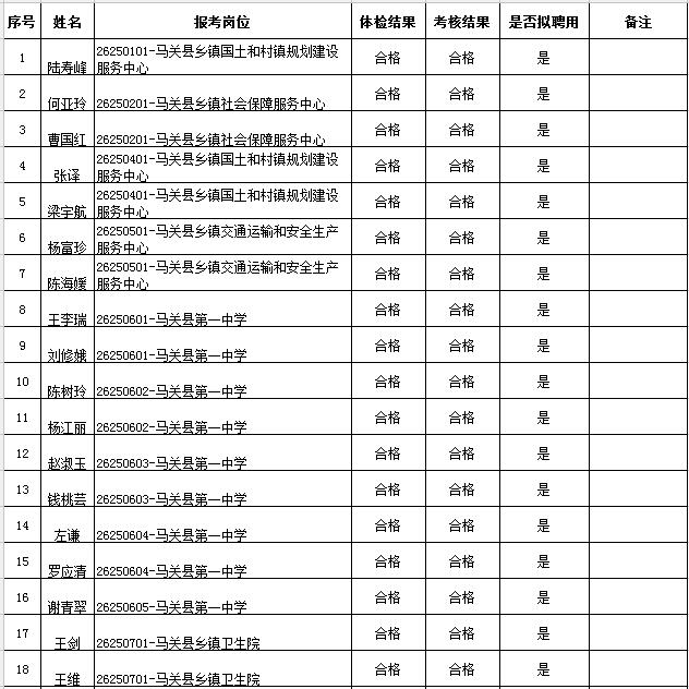 附件:马关县2017年度事业单位公开招聘、紧缺人才招聘体检、考核结果及拟聘用人员名单公示