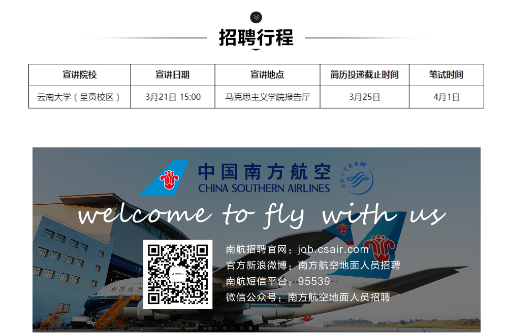 南方航空2018春季校园招聘(云南分公司)