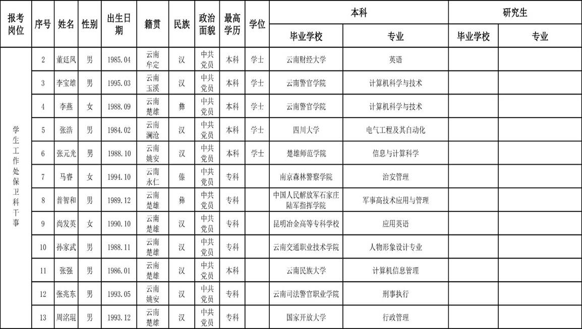 2、楚雄医药高等专科学校2018年公开招聘非编制工作人员面试考生名单。