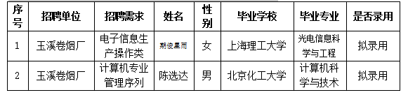 公示时间:2018年7月28日至2018年8月3日 公示期间,对拟录用人员名单有异议的,可实名向红塔集团纪检监察部反映。