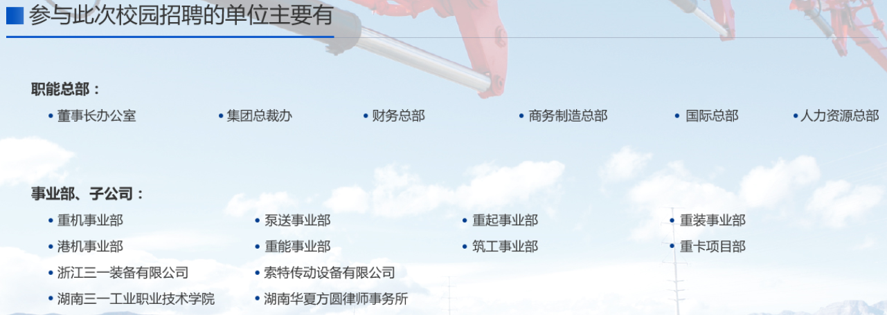 招聘职位及申请网址:http://sany.zhaopin.com/job.html