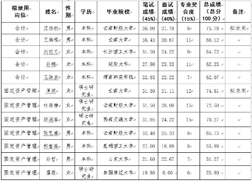 根据工作需要,综合笔面试成绩及排名,现对拟录用人员进行公示。如对拟录用人员有异议,请及时向昆明轨道交通集团有限公司纪检监察室反映。