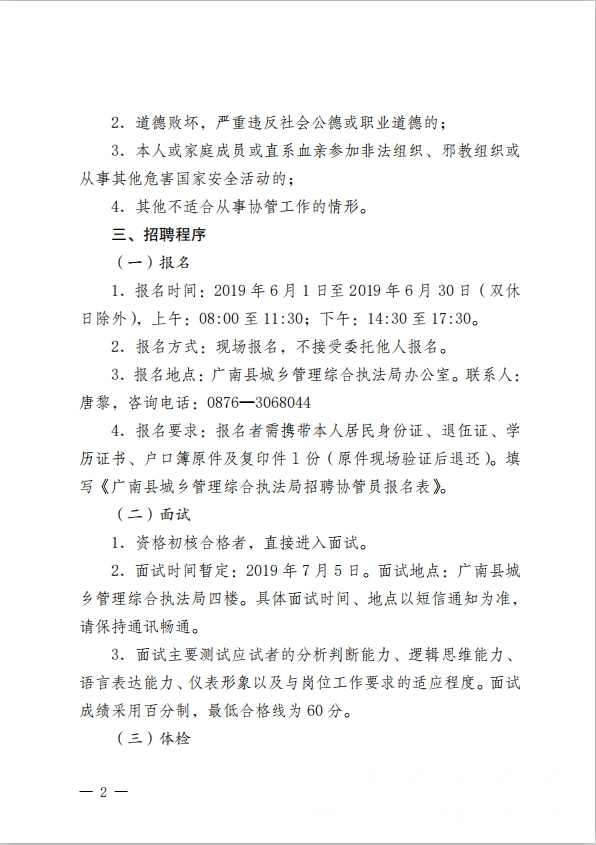 文山州广南县城乡管理综合执法局2019年招聘协管员公告