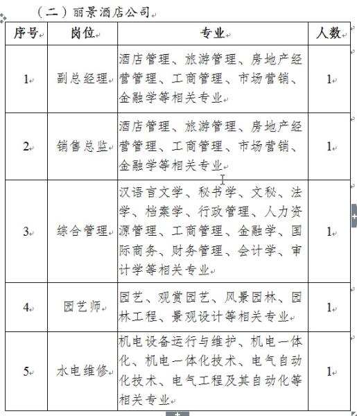 本次计划招聘16人。其中,土投公司招聘5人;丽景酒店公司招聘5人;医疗供应链公司招聘2人;宏骏建设公司招聘4人,具体岗位如下: