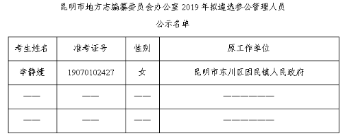 昆明市地方志编纂委员会办公室2019年拟遴选参公管理人员人选公示