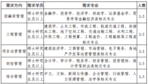 新招收大学毕业生实行岗位见习(试用)制度,博士研究生学历试用期三个月,硕士研究生学历试用期六个月。试用期间原则上在集团所属子公司、项目公司或指挥部等一线岗位轮岗培训,熟悉市场开发、投融资管理、项目建设管理、项目运营管理、企业基础管理等概况。试用期满并考核合格后,根据工作需要及个人综合特点,将人员补充到相关岗位。