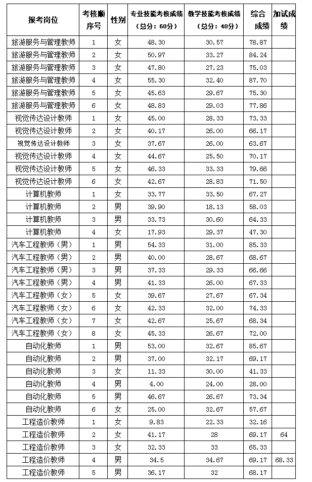 玉溪第二职业高级中学2020年提前招聘教师考核成绩公布