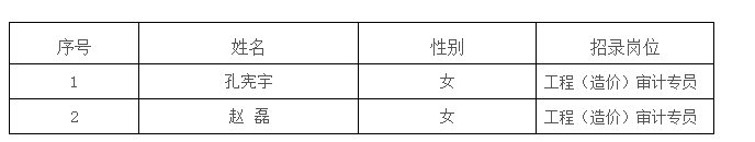 呈贡区审计局公开招聘编外审计专员工作经过公告报名、资格初审,即将于2020年5月10日上午9:30进行面试。我局于5月8日再次对《昆明市呈贡区审计局2020年公开招聘编外审计专员面试入围名单及公告》中的全部面试入围人员进行电话联系,确认面试事宜。其中部分面试入围人员表明因个人原因已无法参加面试。因本次招聘计划按录用人数与面试人选1:5的比例进行面试,现补充两名面试人选,公告如下:
