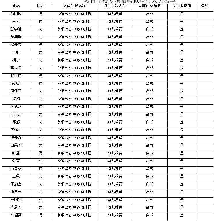 全国开展基础教育学校专项招聘拟聘用人员公示