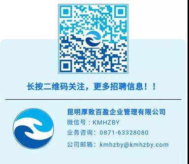 本公告由昆明厚致百盈企业管理有限公司负责解释。后续招聘信息关注昆明厚致百盈企业管理有限公司微信公众号《KMHZBY》或《hzbyDT》。