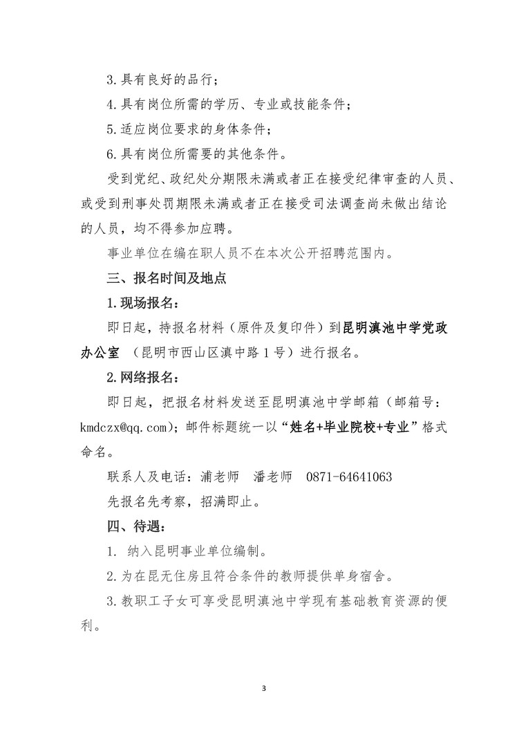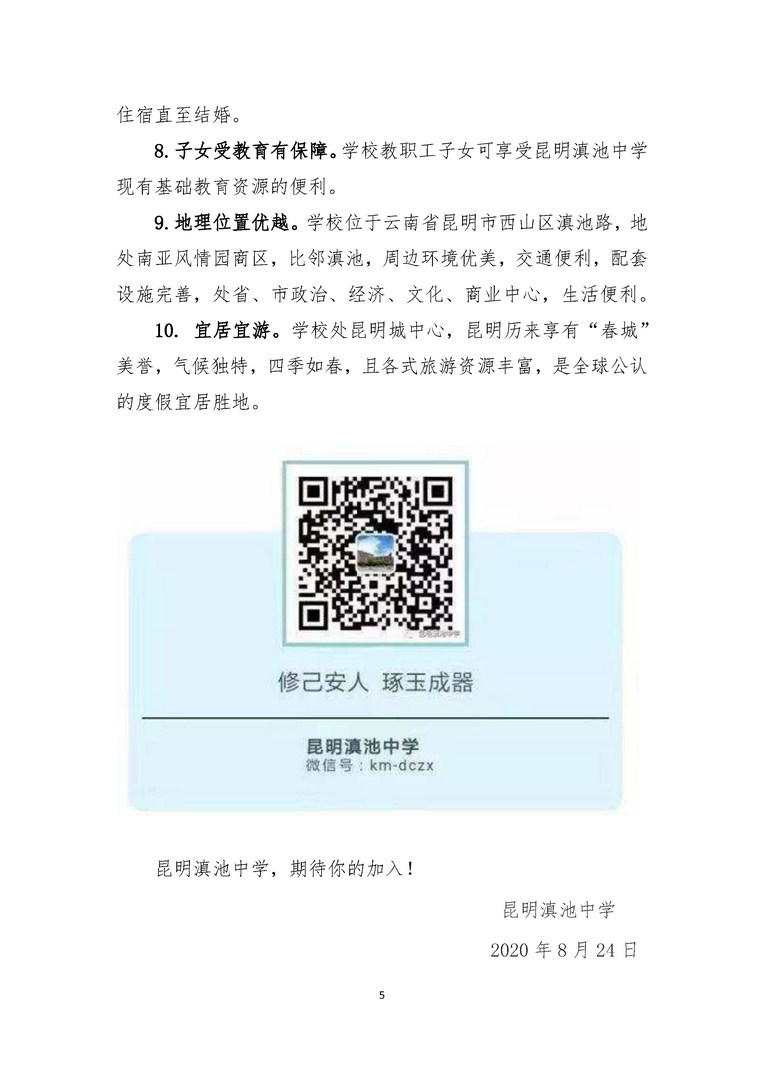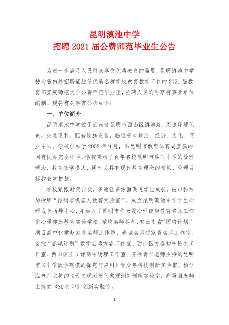 昆明滇池中学招聘2021届公费师范毕业生公告