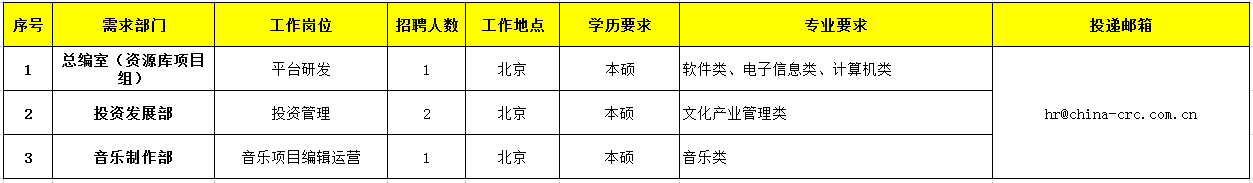 咨询电话:010-65255113-806 邮箱地址: hr@china-crc.com.cn
