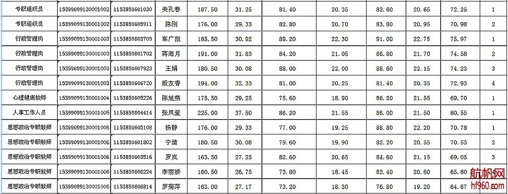根据面试人员综合成绩(综合成绩=专业技能成绩×50%+试讲面试成绩×50% 或 综合成绩=专业技能成绩×25%+试讲面试成绩×25%+实作成绩×50%),按从高到低顺序及岗位拟招聘人数等额确定进入考察阶段的人员。现将情况说明及公示如下: