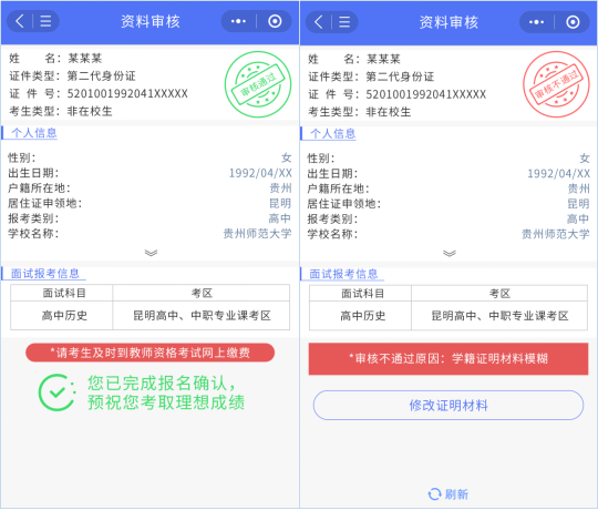 审核结论为“审核通过”的考生需前住中小学教师资格考试网http://ntce.neea.edu.cn进行缴费。缴费成功后,面试报名方能最终完成。
