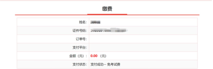减免申请审核通过后,报名系统“支付状态”栏显示“支付成功—免考试费”字样(如下图示),如已缴纳报名费的,在确认工作结束后,收费平台按原缴费途径退费;未缴费的报考者可不再缴费。如报考者在申请后未按下图显示,为确保正常参考,可先行支付报名费,待减免申请确认后将进行退费。