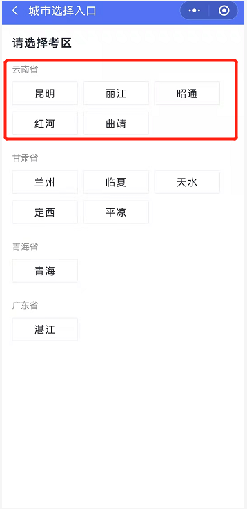 (二)考区选择