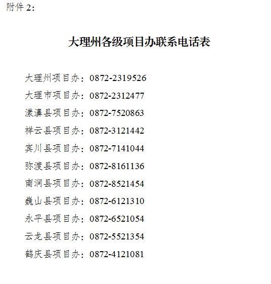 2.大理州各级项目办联系电话表