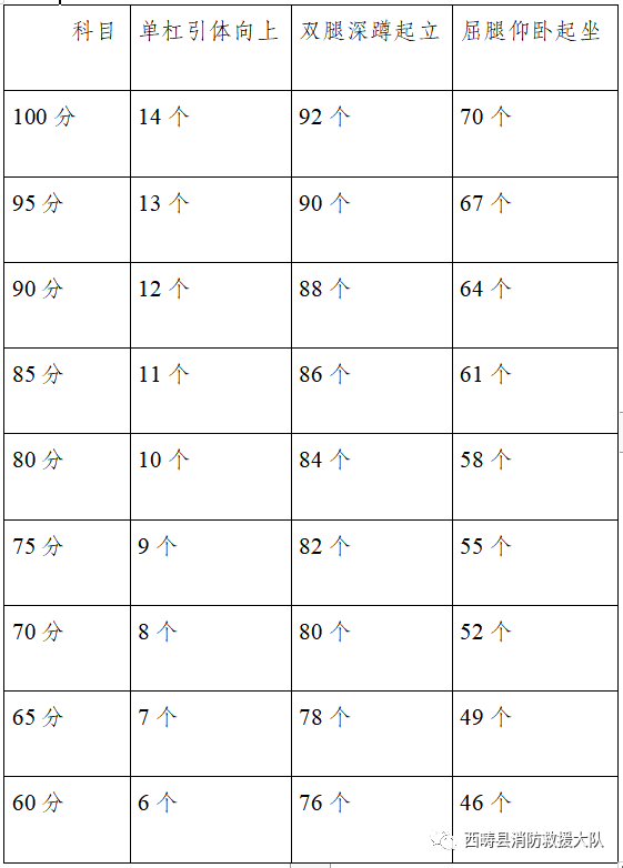 考核科目单杠引体向上、双腿深蹲起立、仰卧起坐。