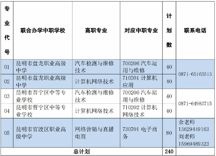 以上五年制高职(专科)招生计划和专业最终以云南招考频道公布为准。