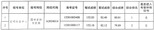 按照《昆明市2024年市级事业单位公开选调工作人员公告》要求,经报名、笔试、资格审查、面试等环节,现将进入面试环节考生的综合成绩公示如下: