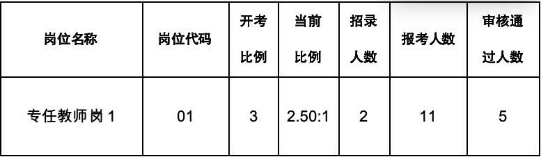 一、审核通过人数与招聘人数比例达不到3:1,经研究,属于招聘硕士研究生紧缺专业岗位,放宽开考比例开考的岗位1个