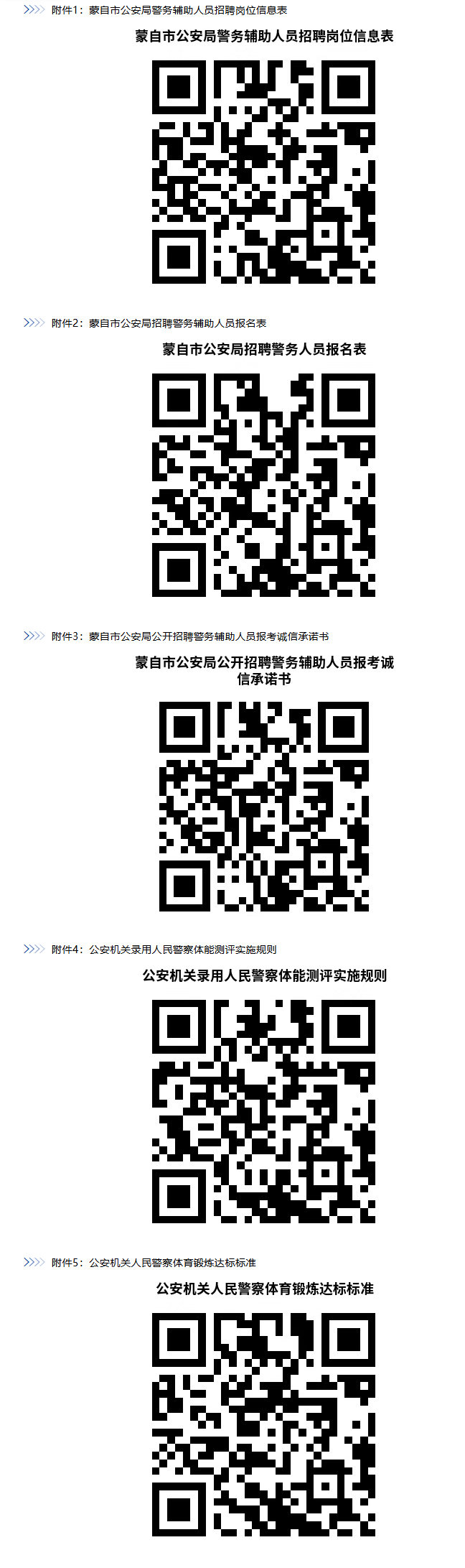 ②报名时需提交《蒙自市公安局招聘警务辅助人员报名表》一式一份(粘贴近期免冠半寸彩色照片),携带本人户口簿、身份证、毕业证、加分证明等材料原件和复印件1份。(详见附件2)