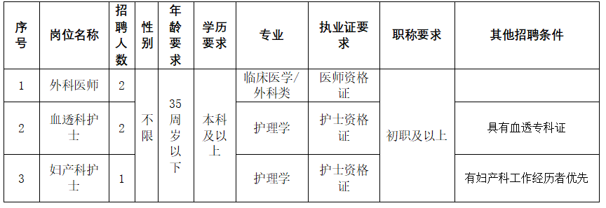 本公司公开招聘医疗类劳务派遣工作人员,岗位要求详见《劳务派遣招聘岗位表》。