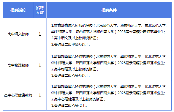 教育部直属六所师范院校(北京师范大学、华东师范大学、东北师范大学、华中师范大学、陕西师范大学和西南大学)2026届云南籍公费师范毕业生。