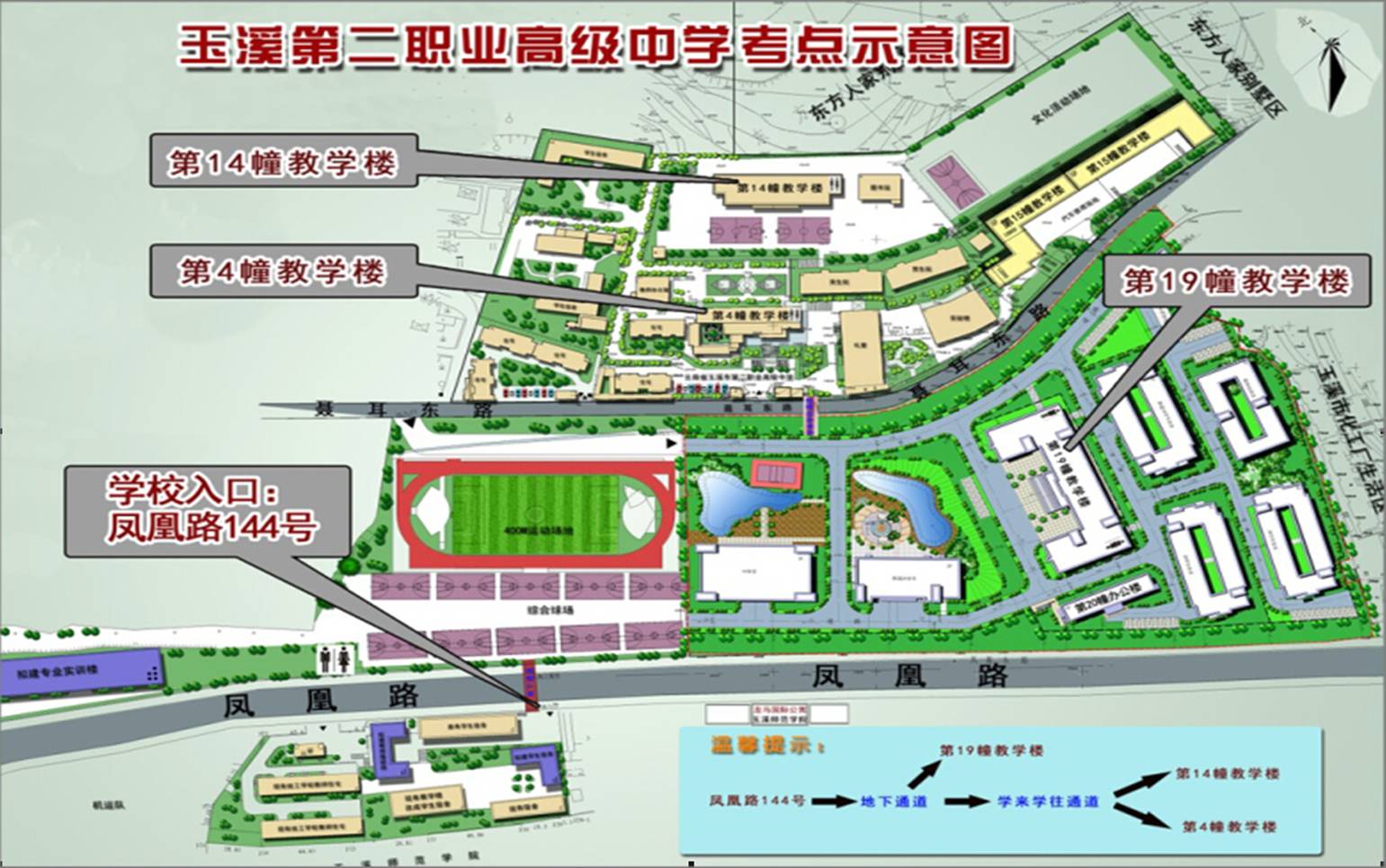 2015年玉溪市第二批事业单位公开招聘笔试红塔区考点设在玉溪第二职业高级中学。由于聂耳路道路施工,无法由聂耳路进入,请各位考生由凤凰路144号(玉溪师院龙马国际公寓隔壁)进入(见附图)。因考生人数较多,交通拥堵,请各位考生提前熟悉考点,认清考场所在楼幢,准时参加考试。