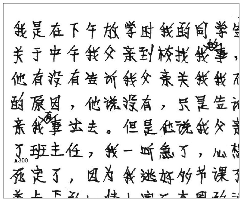 ●采用红色光源主观解答题书写部分进行扫描,光源将把红色或与红色相近的颜色的字迹过滤掉,而保留非红色的字迹。因此,如果用浅颜色的笔书写,扫描出来的图象就浅,导致评卷教师看不清楚。