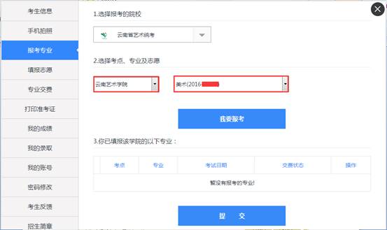 云南艺术学院2016年艺术类专业报名系统操作说明