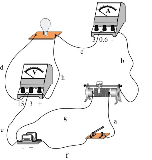 某学校初三学生在研究性学习活动中,希望进一步探究“流过小灯泡的电流与小灯泡两端电压的大小关系”。实验中,用导线a、b、c、d、e、f、g和h按题图所示方式连接电路,电路中所有元器件都完好,且电压表和电流表已调零。闭合开关后,发现有实验小组出现如下情况: