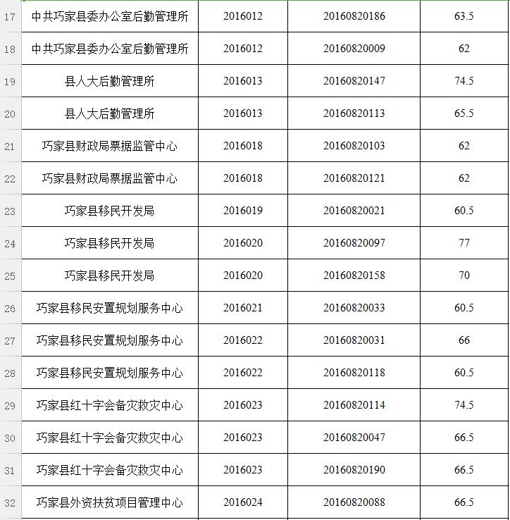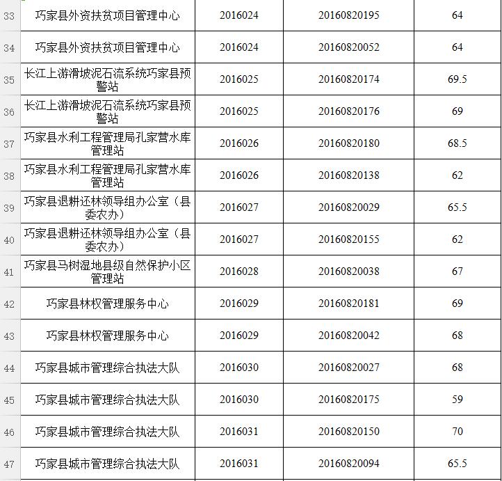 经巧家县县直机关事业单位2016年下半年公开选调工作领导组研究决定,本次公开选调笔试最低合格分数线确定为55分。笔试总成绩达不到最低控制分数线的考生,不得进入资格复审、面试、考察和业绩评价等环节。对达到最低合格分数控制线以上人员,按岗位选调人数比例1:2的比例确定资格复审人员,分数并列的,一同列入资格复审,分数超过控制线人数不足岗位1:2要求的,按1:1进入资格复审,名单附后。