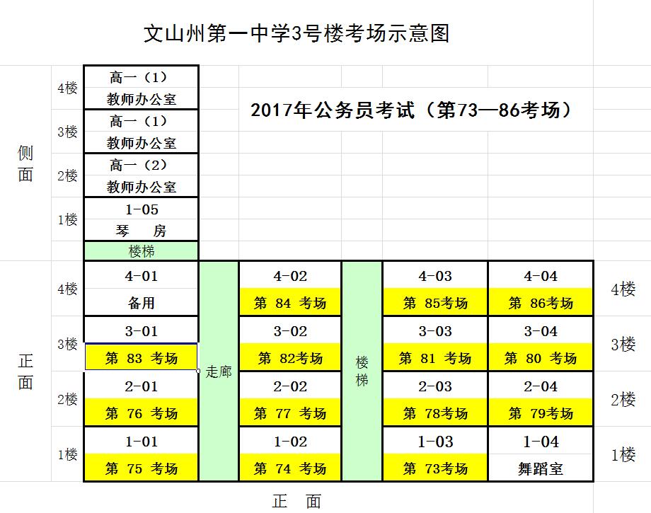 2017年文山州第一中学公务员考试考点考场分布示意图