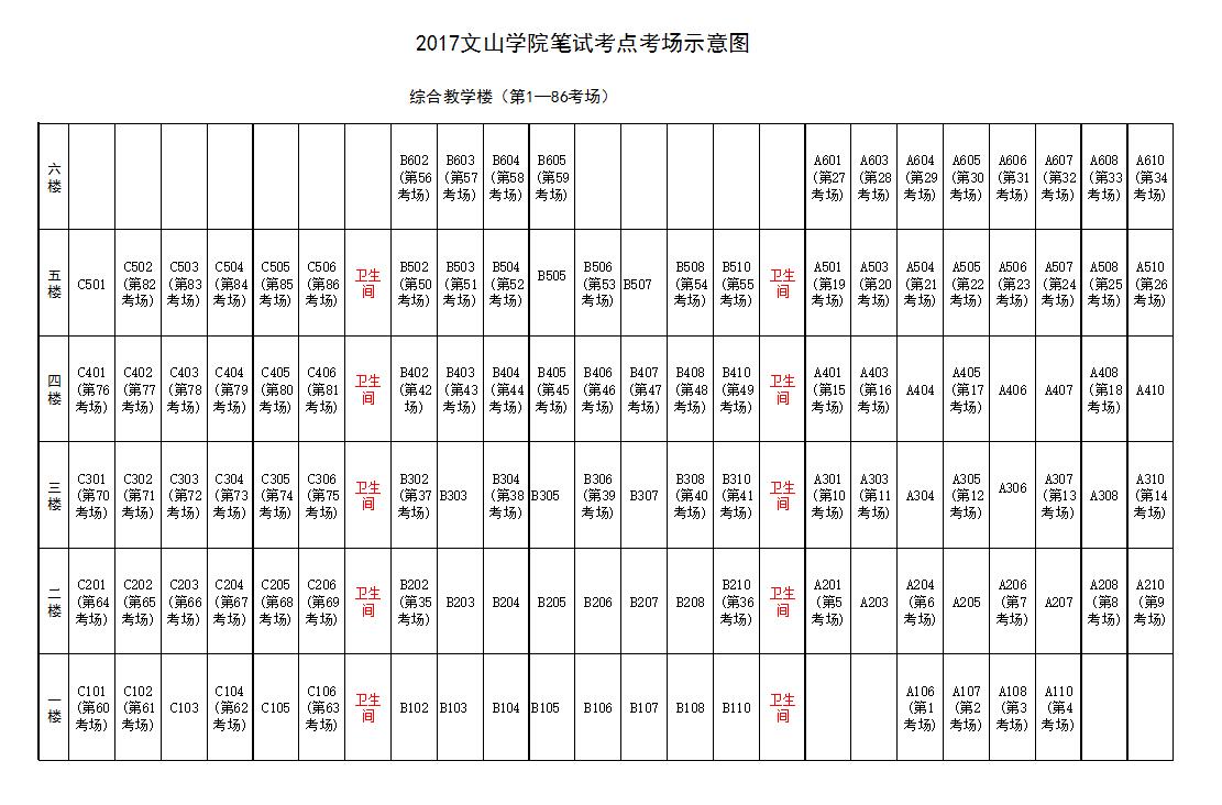 2017年文山州第一中学公务员考试考点考场分布示意图